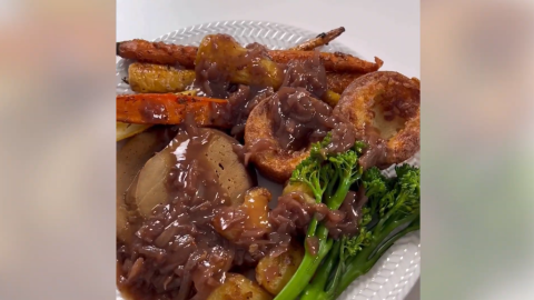 Slice the roast, pour over the onion gravy, and add Tenderstem® to make the perfect dish.